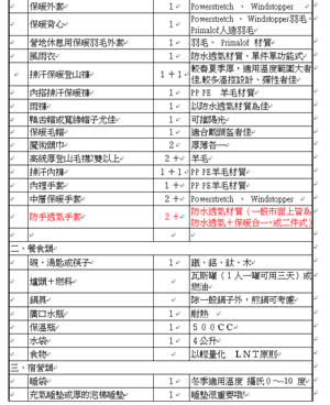 雪地裝備檢查表(初級到進階)