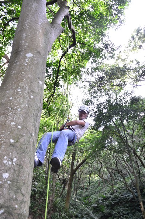 新竹和桃園交界的風之谷樹攀場,有著高高瘦瘦的九丁榕大樹爹,不管大人及小孩攀樹,都玩到一直說,要要要 要再玩。爬上樹梢,聽聽看是樹或是風在唱歌。居高臨下的感覺,仿佛置身另一個空間,世界都靜止了。攀樹適合全家親子一起來體。